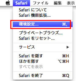 - メニューバーの[Safari]-[環境設定...]を選択します。