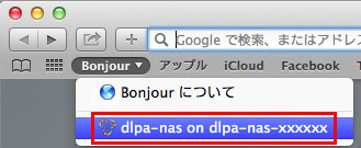 - Bonjourより「dpla-nas-xxxxxx」(xxxxxxの部分はMACアドレスの下6桁で、本体のラベルで確認できます)を選択します。